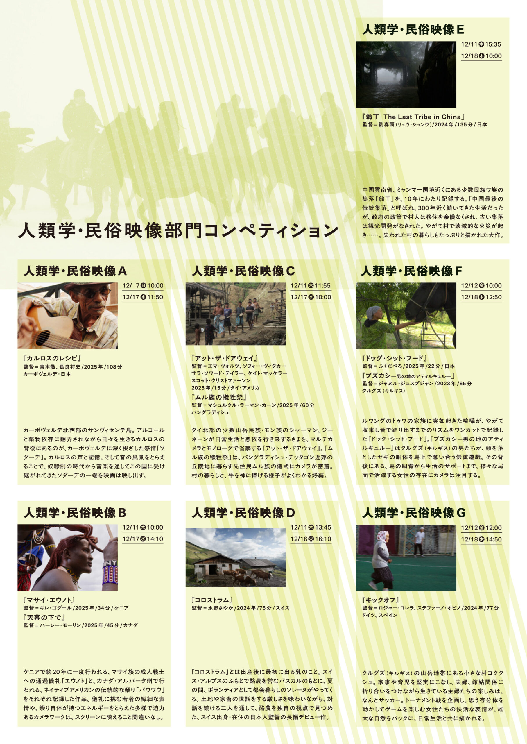 ■人類学・民俗映像部門コンペティション(A〜G 全15作品)